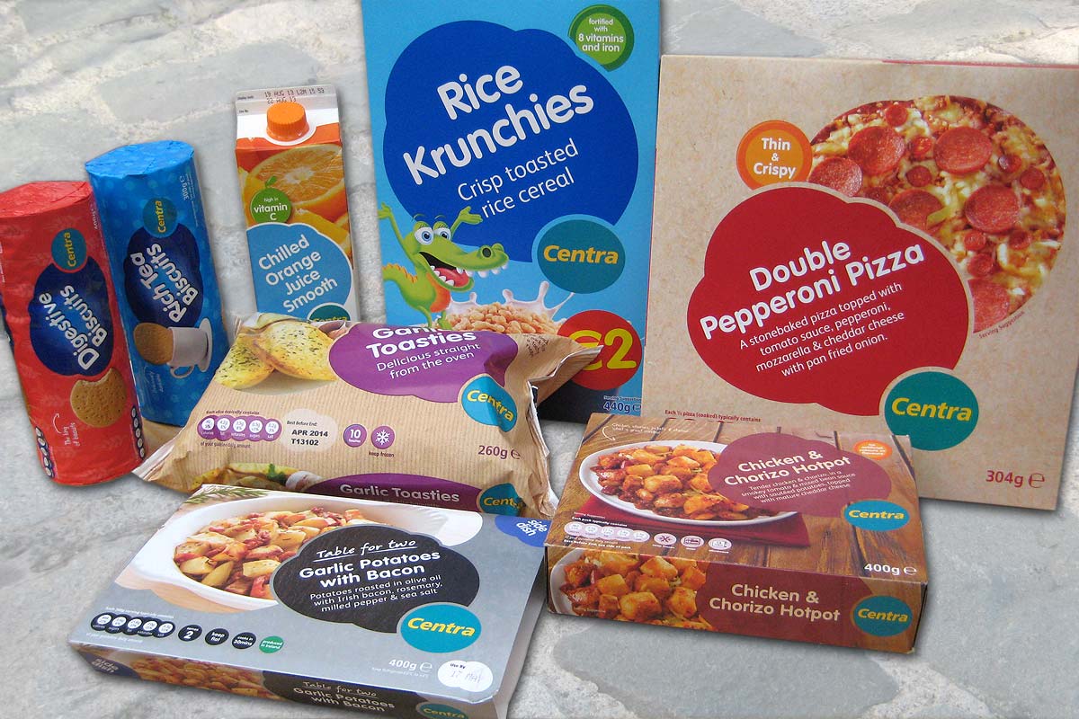 - Centra and SuperValu: With each pack I was given an initial front of pack design file, text document, photography and a suppliers keyline. Using Illustrator, I then applied these across a diverse range of food and household product artwork, while adhering to the new Centra/Super Valu brand guidelines.